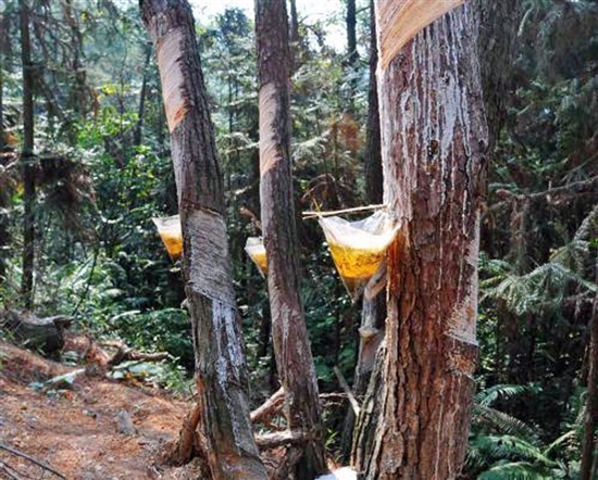 家住白沙村楊梅樹組的楊忠寶,種植松樹100畝,他告訴筆者:“松樹一年四季都可以采割,現(xiàn)在我們學(xué)會(huì)了科學(xué)的采割技術(shù),不僅松脂量增多了,松樹也得到了有效保護(hù),一年下來松脂收入有6萬元,松脂成為了我們老百姓的‘綠色銀行’”。