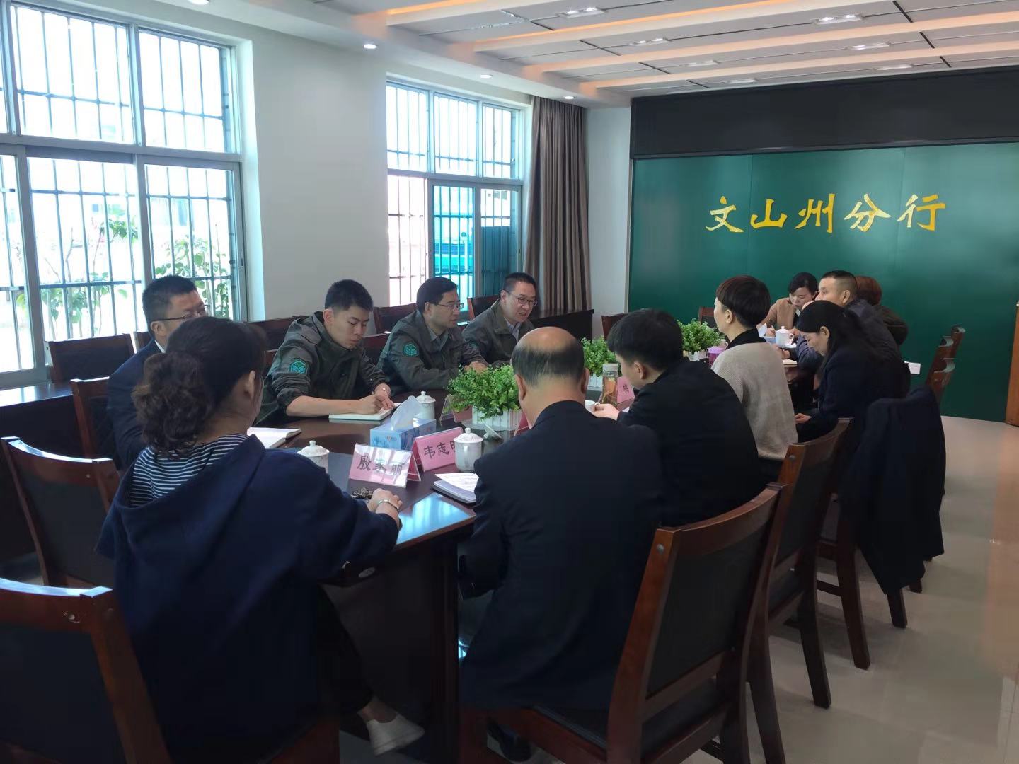 會后,董事長一行又趕往郵儲銀行文山州分行交流座談,與會領(lǐng)導有郵儲銀行州分行賀梅副行長、文山市支行行長殷家麗。賀梅副行長為農(nóng)擔切實解決涉農(nóng)企業(yè)融資困境表示感謝,并表示愿意一如既往與農(nóng)擔保持緊密伙伴關(guān)系。殷家麗行長贊賞農(nóng)擔是一支朝氣蓬勃的隊伍,針對農(nóng)擔在郵儲銀行擔保體量大的特點,提出要嚴把項目風險,強化責任意識,并告誡年輕的業(yè)務(wù)人員提升廉潔意識,做清白的金融人。郭影董事長介紹了與郵儲銀行業(yè)務(wù)發(fā)展現(xiàn)狀,提出合作中存在問題,同時探討批量化產(chǎn)品的可行性。雙方領(lǐng)導的深入交流,為文山銀擔關(guān)系的良好發(fā)展打下堅實的基礎(chǔ),為未來業(yè)務(wù)的增長提供了無限的契機。