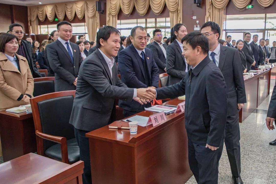 張巖松廳長與省農(nóng)擔(dān)公司優(yōu)秀員工親切握手