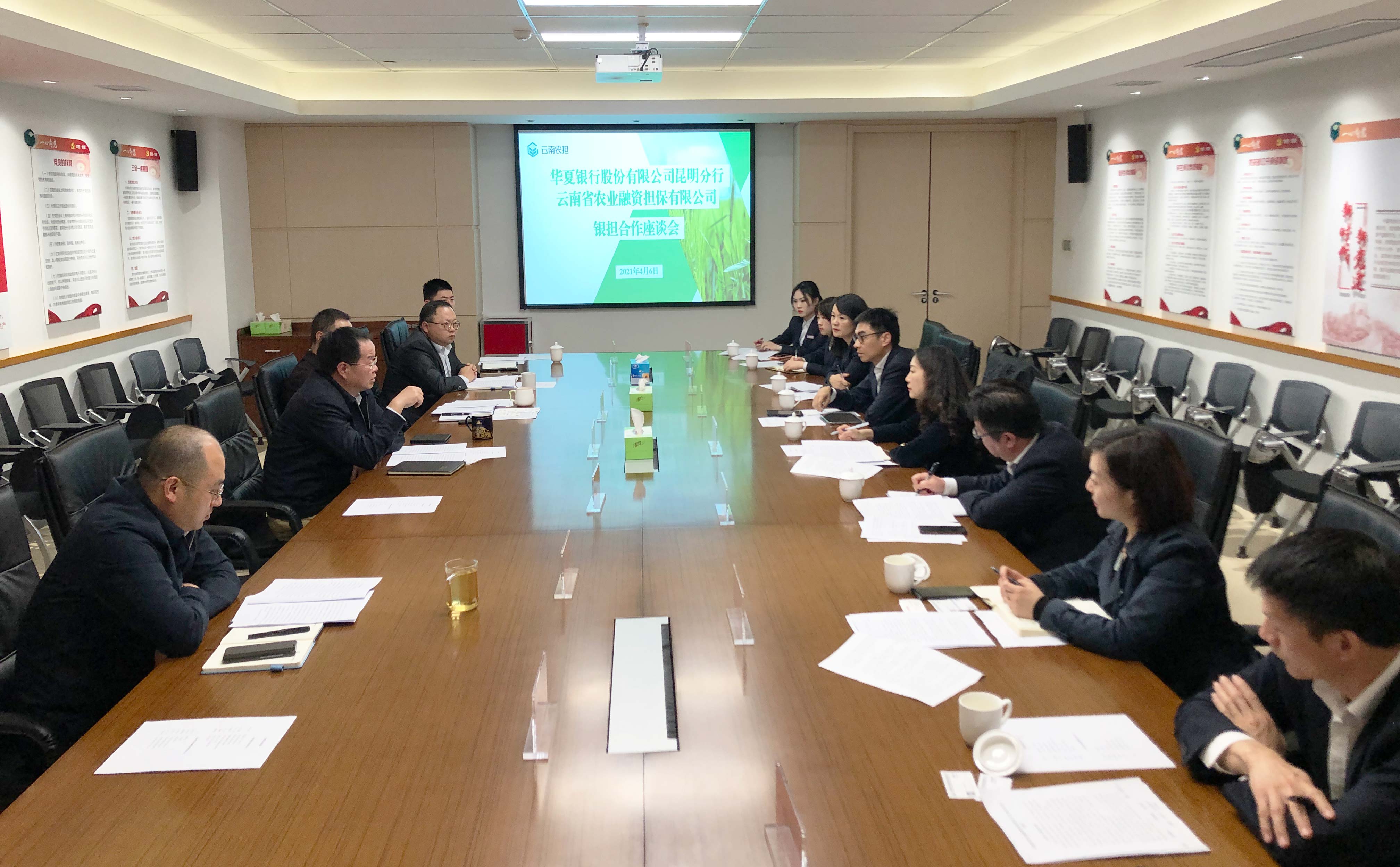 4月6日,云南農(nóng)擔與華夏銀行昆明分行召開銀擔合作座談會。華夏銀行季少青副行長攜授信審批部、普惠金融部、公司業(yè)務(wù)部、供應鏈業(yè)務(wù)金融部和金江支行負責人等參加會議。農(nóng)擔公司董事長杜開波、總經(jīng)理李世偉、副總經(jīng)理廖寅皓,業(yè)務(wù)發(fā)展部、風險控制部、戰(zhàn)略發(fā)展部和昆明專營中心負責人參會。