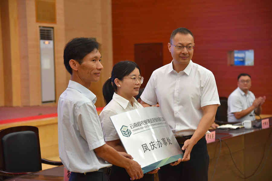 為進一步助推鳳慶縣農(nóng)業(yè)產(chǎn)業(yè)振興,發(fā)揮農(nóng)擔政策性擔保作用,9月15日,云南省農(nóng)擔公司鳳慶辦事處授牌儀式在鳳慶縣會展中心報告廳順利舉行。公司總經(jīng)理李世偉、戰(zhàn)略發(fā)展部經(jīng)理蔡菲、業(yè)務發(fā)展部副經(jīng)理寸明杰,臨滄市人民政府金融辦公室主任羅廷榮、鳳慶縣委常委、縣人民政府常務副縣長陳正華、臨滄市農(nóng)業(yè)農(nóng)村局副局長翟國軍等領導出席會議。鳳慶縣各政府部門及鳳慶縣13個鄉(xiāng)(鎮(zhèn))人民政府分管農(nóng)業(yè)農(nóng)村工作的領導,縣人行及各金融機構主要負責人參加會議。