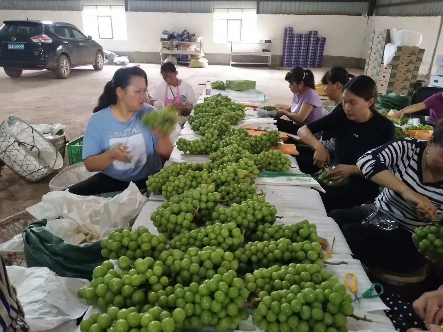云南農(nóng)擔(dān)公司在??蛻綦p柏縣三江葡萄莊園有限公司成立于2013年,注冊(cè)資本金100萬元,是一家專門從事葡萄種植銷售的企業(yè),現(xiàn)有技術(shù)人員2人,管理人員5人,一線種植固定工人40余人。在雙柏縣大麥地鎮(zhèn)很本楷建有葡萄基地50畝,用于試種陽光玫瑰,并取得一定經(jīng)驗(yàn)。在農(nóng)擔(dān)公司支持和幫助下,2018年公司擴(kuò)大種植規(guī)模至185畝并取得了一定的經(jīng)濟(jì)效益。由于綠汁江畔獨(dú)特的氣候條件和精湛的技術(shù),三江公司開創(chuàng)了雙季葡萄的先河,一年可采收葡萄2次,分別于4月初和9月底上市。以上圖片為盡調(diào)時(shí)拍攝的基地工人包裝陽光玫瑰的照片。